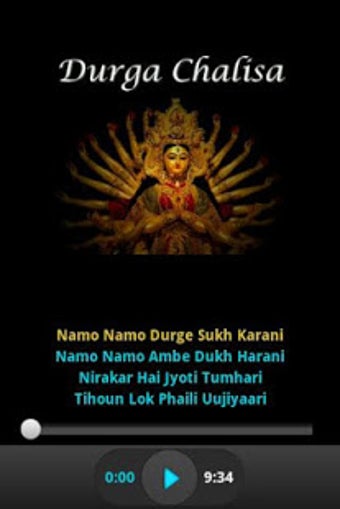 Durga Chalisa Audio Lyrics är en användarvänlig app för Android som erbjuder en offlineupplevelse av den populära 40-versers bönen Durga Chalisa. Appen tillhandahåller både ljuduppspelning och textvisning av bönen, vilket gör den idealisk för både nybörjare och erfarna utövare. Under uppspelning av ljudet markeras även den aktuella raden i texten, vilket underlättar följande av bönen. Denna funktion är särskilt användbar för dem som vill lära sig och recitera bönen korrekt.